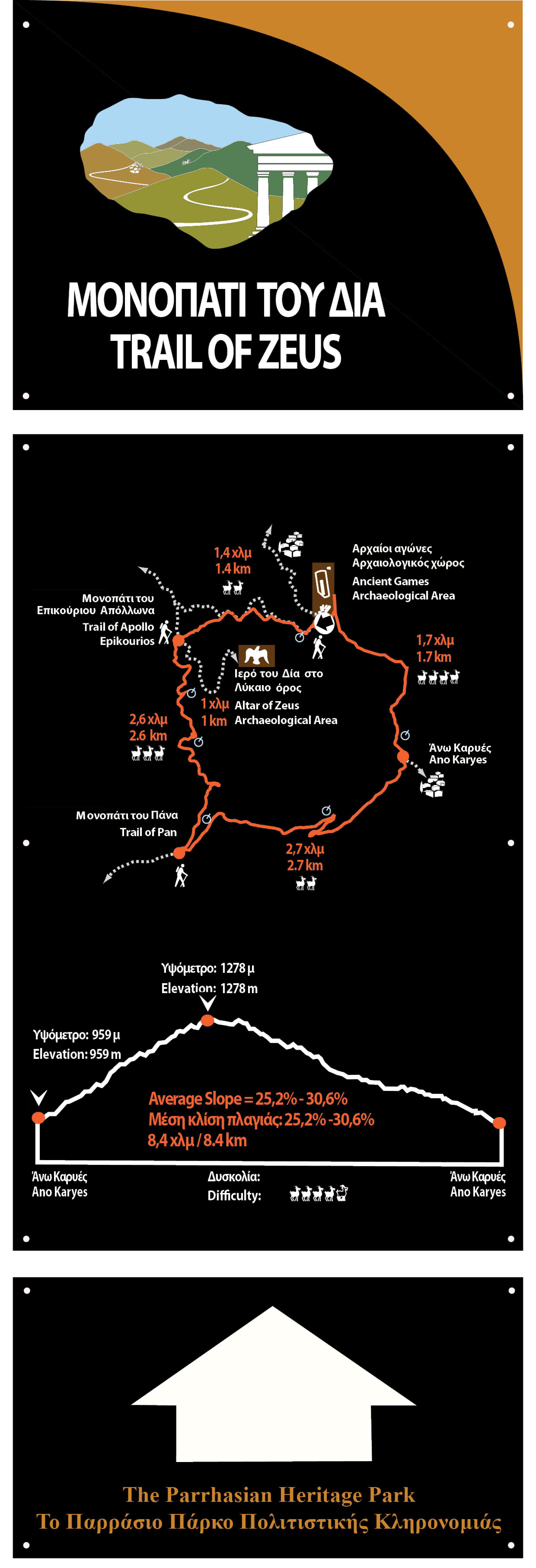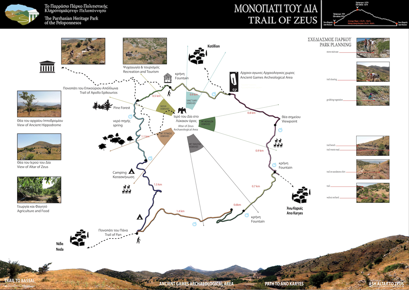 The Trail of Zeus was the second trail to open in the Parrhasian Heritage Park. It was inaugurated on July 14, 2012.
