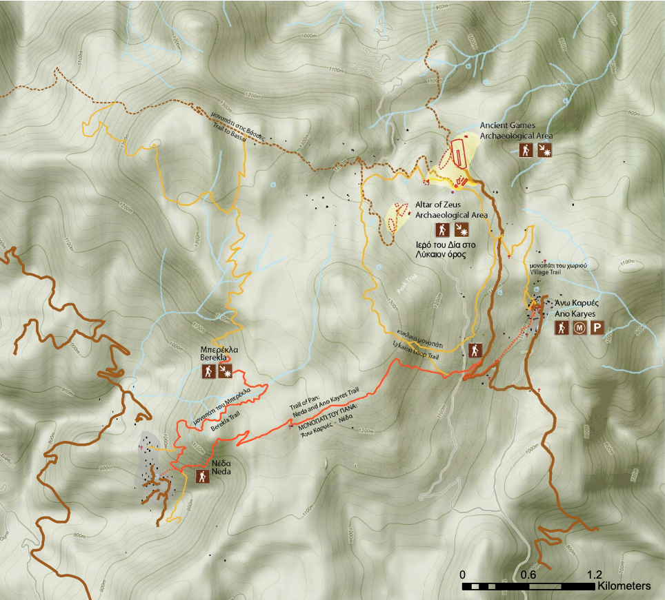 Map of the Trail of Zeus around Mt. Lykaion