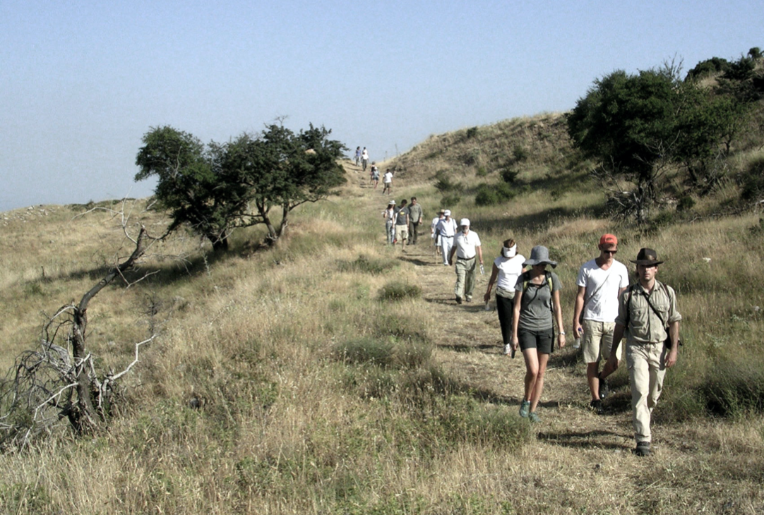 Twenty villagers, civic officials, and the Parrhasian Heritage Park Field School participants met in Ano Karyes and hiked to the ancient hippodrome at the Sanctuary of Zeus at Mt. Lykaion.